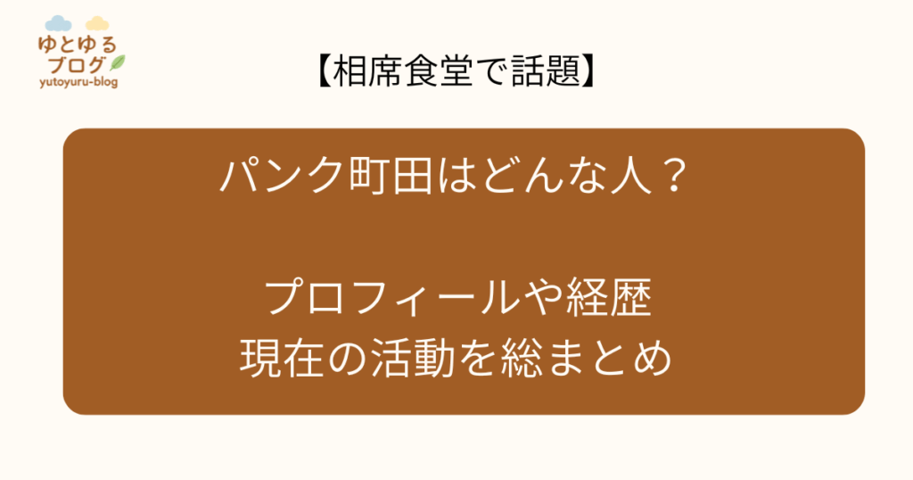 今回は、パンク町田さんについて経歴や現在の活動を調べてみました! 先日「相席食堂」に出演されており、気になっていました。どんな人なんだろうと調べて見ると、思っていたよりも幅広い活動をされていました! この記事でわかること ・パンク町田さんの... -