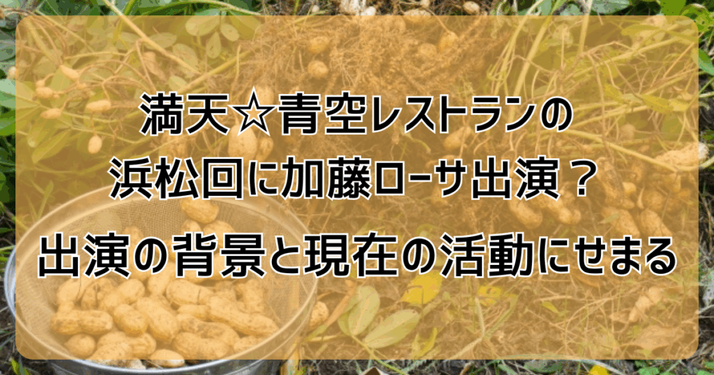 『満天☆青空レストラン』に加藤ローサさんが出演する理由に注目が集まっています。インターネットでは「結婚後に浜松で暮らしていたのは本当?」「現在はどこで活動しているの?」「浜松の食材が紹介される回に出るのは、やはりゆかりがあるから?」といっ... -