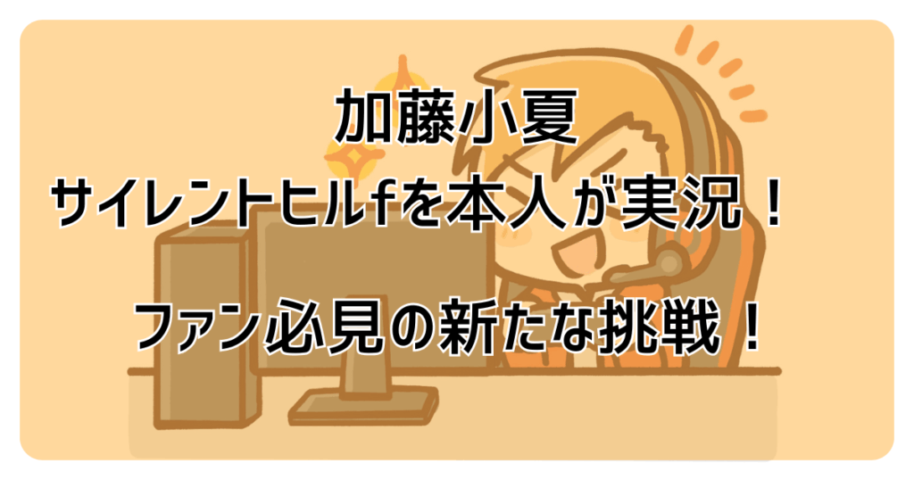 女優・モデルとして活躍する加藤小夏さんが、ホラーゲームの名作シリーズ最新作『サイレントヒル f』で主人公・深水雛子を演じることになり、さらに自身で実況配信を始めたことで注目を集めています。 https://www.youtube.com/watch?v=0Ek5c3sQygs 女優と... -