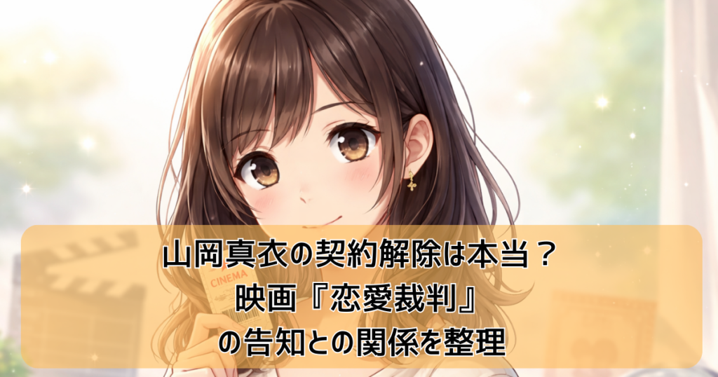 「山岡真衣が契約解除って本当?」と驚いて検索した人、多いと思います。お知らせ文が“それっぽい”ほど、なおさら不安になりますよね。 結論から言うと、この「契約解除」は映画『恋愛裁判』のプロモーション(演出)です。 そもそも『山岡真衣』は映画『... -