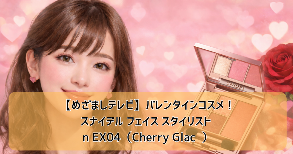 2026年2月4日のめざましテレビで、バレンタインコスメ特集として『スナイデル フェイス スタイリスト n EX04(Cherry Glacé)』が紹介されます! 目元も頬もこれ1つで仕上げたい人に人気の、バレンタイン限定パレット。放送後は在庫が動きやすいので、気に...
