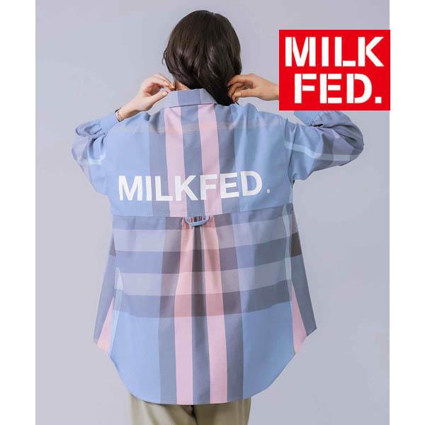 結論から言うと、ちーちゃんが着ていたのはMILKFED.(ミルクフェド)の「BACK LOGO PLAID SHIRT」です。背中の大きなロゴがアクセントになるチェックシャツで、1枚でも羽織でも使いやすいタイプ。