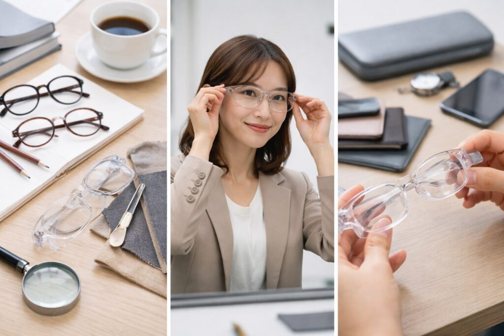 • オフィスで浮かない選び方(透明・フレーム形・色のコツ)