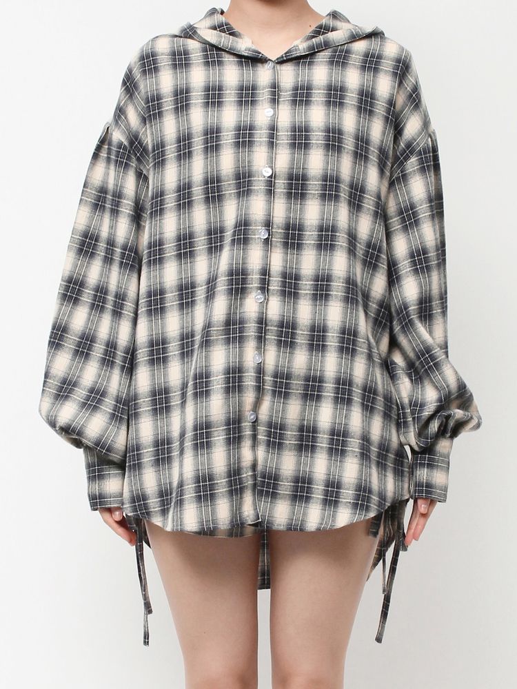 商品名:フードチェックオーバーサイズシャツ