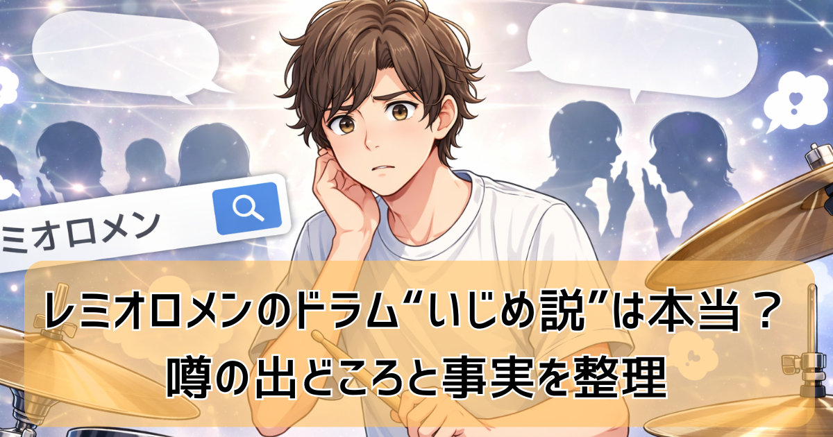 レミオロメンの「ドラム いじめ」というワードは、本人や公式が“いじめ被害”を公表した事実があるというより、いくつかの話題が結びついて「それっぽい噂」として拡散したことで検索されやすくなったと考えられます。