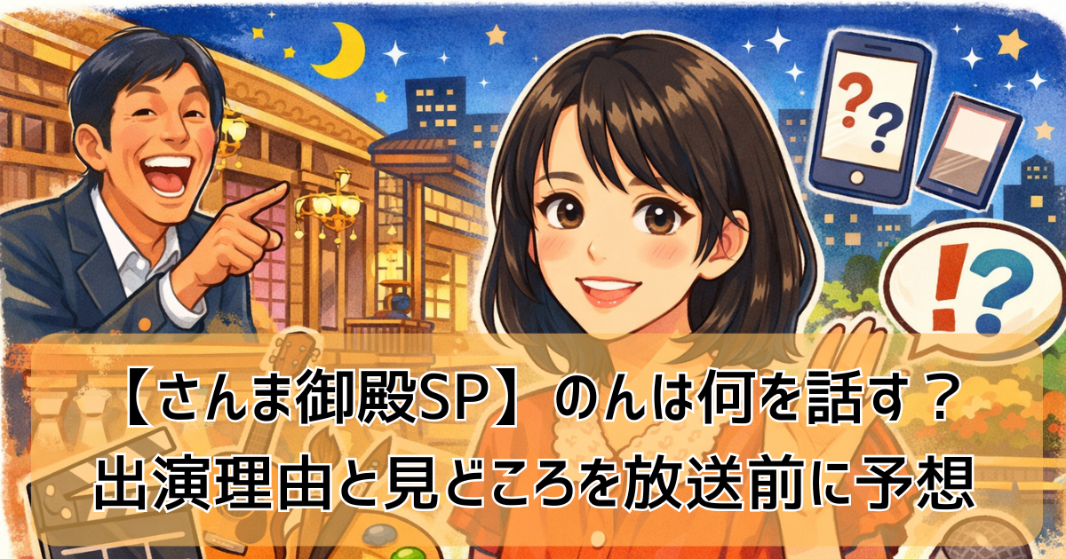今夜のさんま御殿SPは、のんの“一言”が話題になる展開にも期待できそうです。
